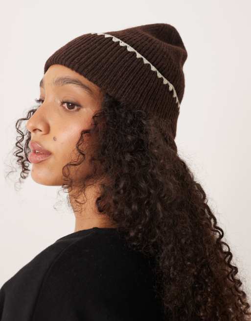 Accessorize – Brązowa czapka beanie z ozdobnymi szwami