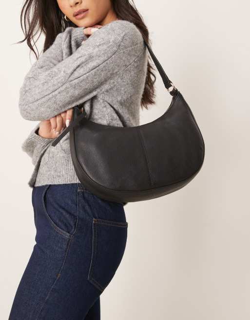 Accessorize – Czarna skórzana torebka na ramię z półokrągłą górą