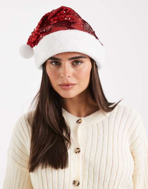 Accessorize – Czerwona cekinowa świąteczna czapka Mikołaja