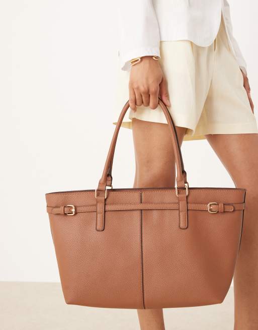 Accessorize – East To West – Beżowa torba typu tote z ozdobną sprzączką