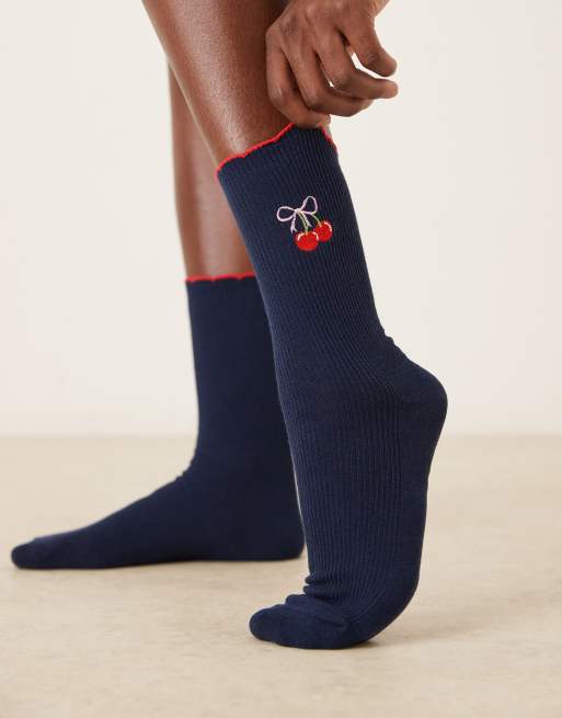Accessorize – Granatowe skarpetki z motywem kokardki i wisienek