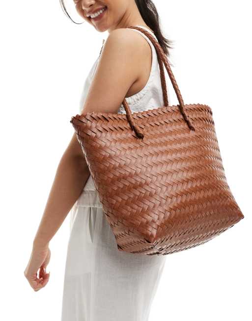 Accessorize – Jasnobrązowa pleciona torba na ramię z rączką u góry