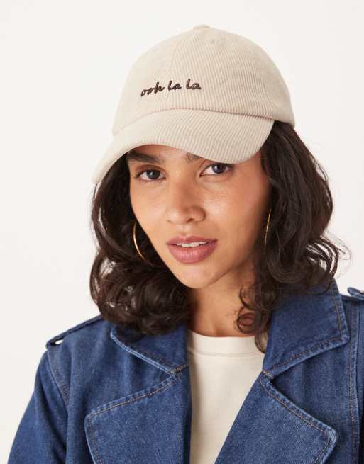 Accessorize – Ooh La La – Kremowa sztruksowa czapka z daszkiem