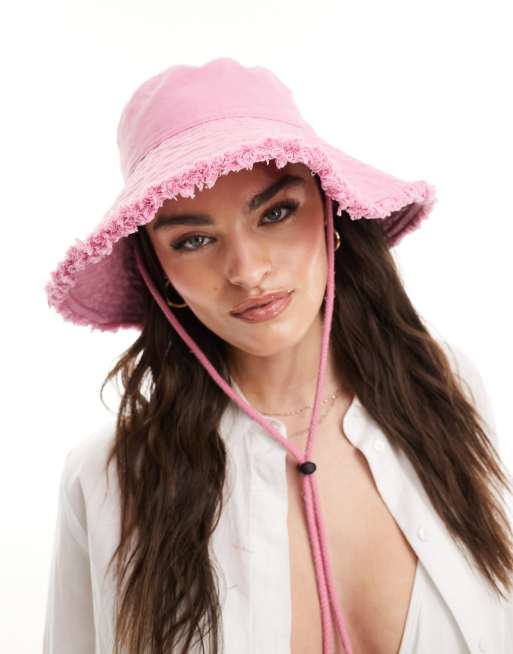 Accessorize – Różowy bawełniany kapelusz typu bucket z troczkami i postrzępionym brzegiem