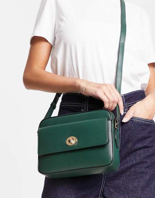 Accessorize – Zielona pudełkowa torebka crossbody z przekręcanym zapięciem