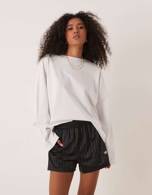 adidas Originals – Czarne satynowe szorty w prążki