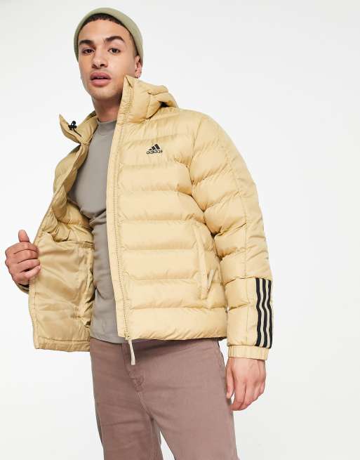 adidas Outdoor – Beżowa kurtka ocieplana z kapturem i trzema paskami – BEIGE