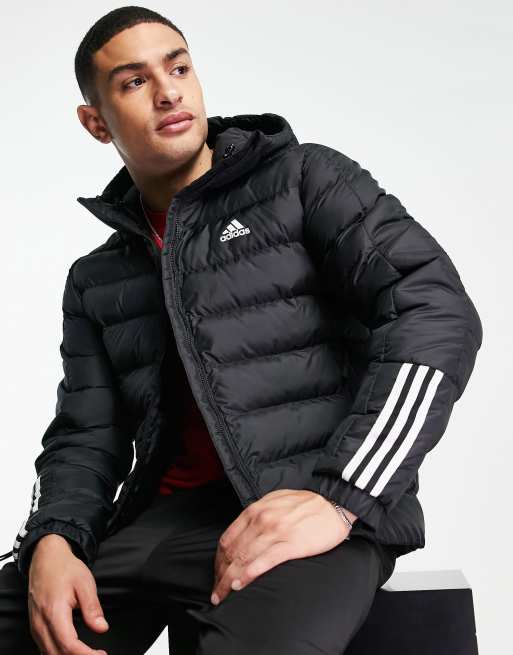 adidas Outdoor – Czarna kurtka ocieplana z kapturem i trzema paskami