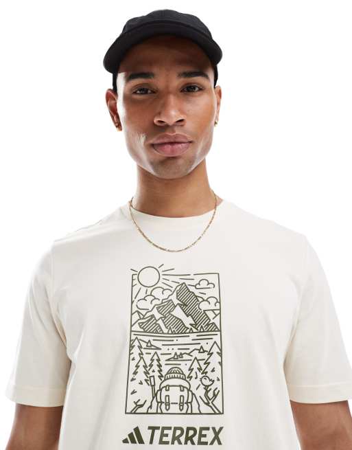 adidas – Outdoor Terrex – Kamiennobeżowy T-shirt z nadrukiem na piersi