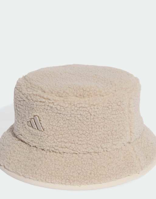 adidas Performance – Beżowy zimowy kapelusz typu bucket ze sztucznego kożuszka