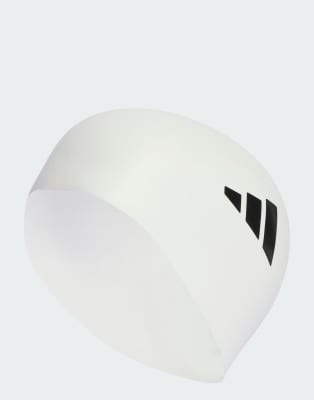 adidas Performance – Biało-czarny czepek kąpielowy z 3 paskami