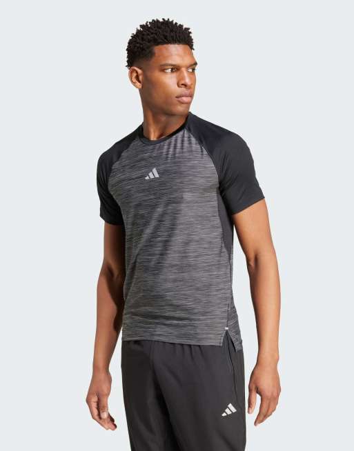 adidas Performance – Czarna melanżowa koszulka z 3 paskami na siłownię i trening