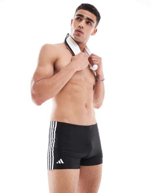 adidas Performance – Czarne klasyczne bokserki kąpielowe z 3 paskami