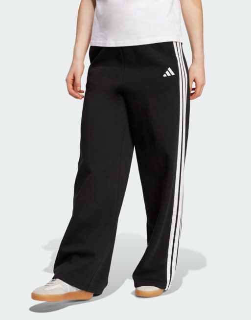 adidas performance – Czarne polarowe spodnie z szerokimi nogawkami i 3 paskami