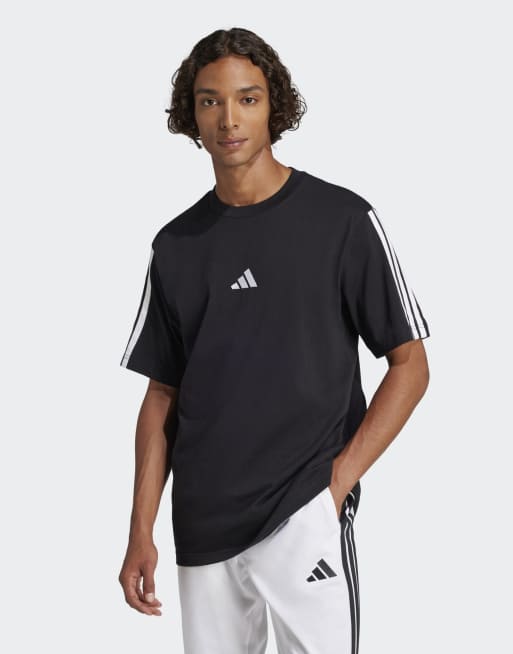 adidas Performance Essentials – Czarno-biała koszulka dżersejowa z 3 paskami