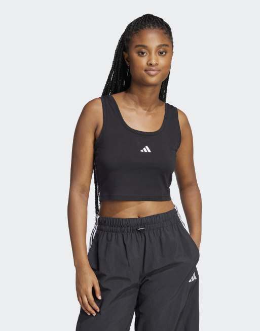 adidas performance – Essentials – Czarno-biały bawełniany podkoszulek bez rękawów z małym białym logo