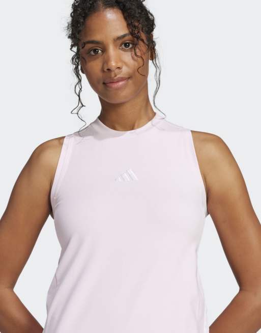 adidas performance – Essentials – Długa różowa sukienka o fasonie bokserki z 3 jasnymi paskami
