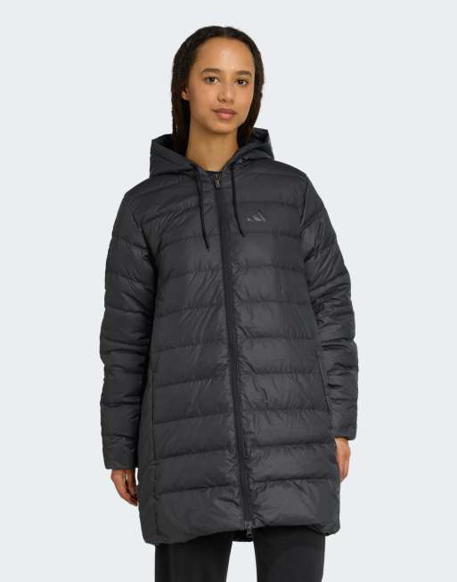 adidas Performance – Essentials – Lekka czarna parka ocieplana z kapturem, technologią Climawarm i motywem 3-Stripes