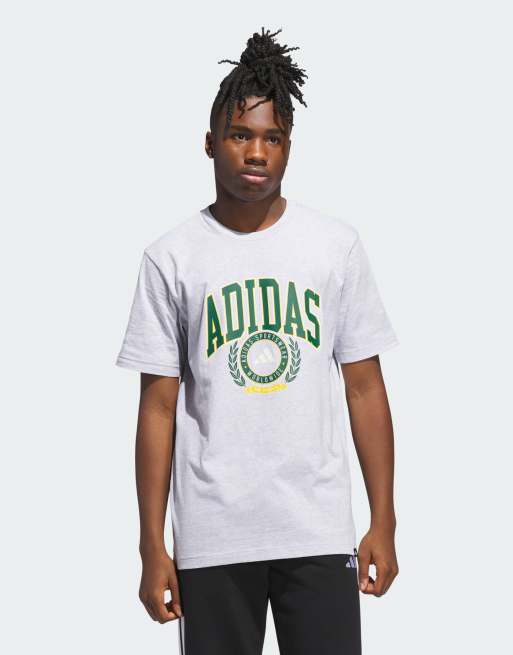 adidas Performance – Jasnoszary melanżowy T-shirt z grafiką z herbem w uczelnianym stylu