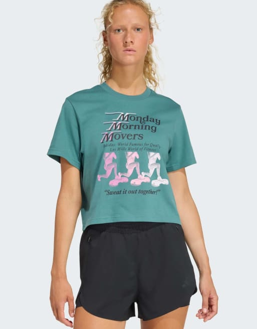 adidas performance – Lesmills Movers – Turkusowy T-shirt z grafiką