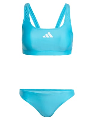 adidas Performance – Niebiesko-białe bikini z 3 paskami i tyłem z wycięciem V
