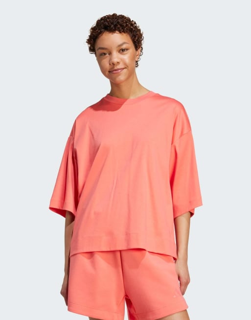 adidas Performance – Soft Lux – Koralowy T-shirt o luźnym kroju