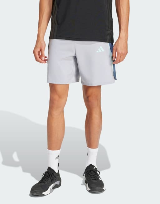 adidas Performance – Tech Apparel – Srebrne szorty z blokami kolorów