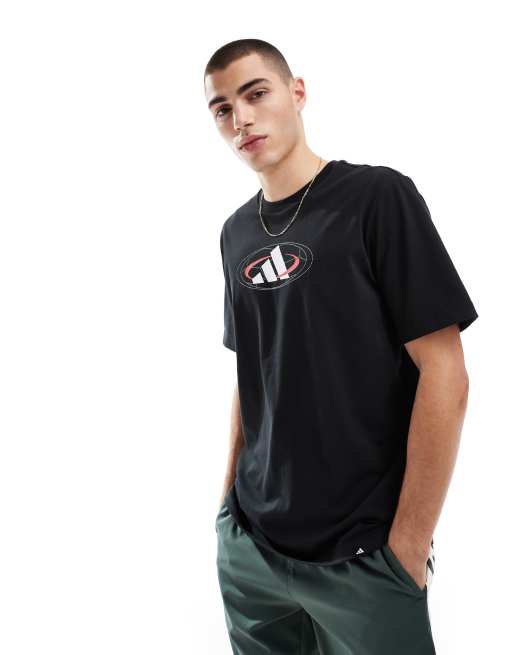 adidas Sportswear – Czarny T-shirt z grafiką z 3 paskami