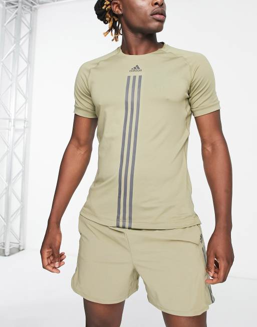 adidas Training – Alpha Strength – T-shirt w kolorze khaki z 3 paskami