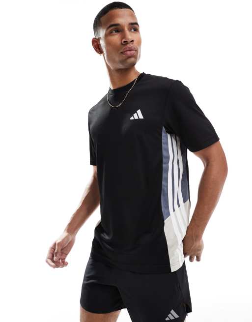 adidas Training – Essentials – Czarno-szary T-shirt z 3 paskami