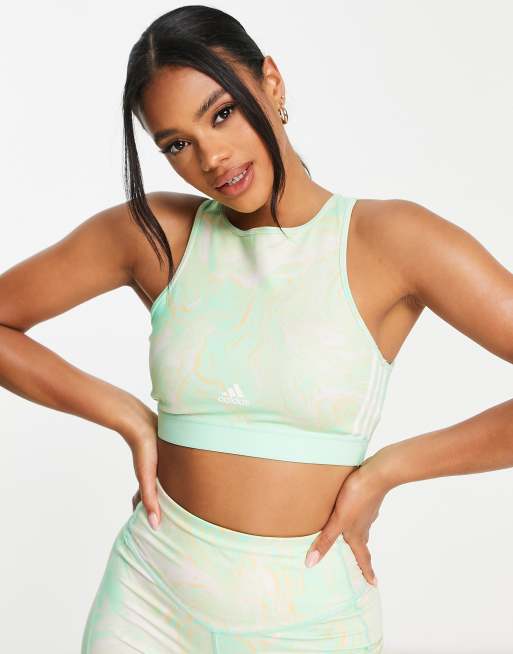 adidas Training – Hyperglam – Biustonosz sportowy do lekkointensywnych ćwiczeń w zielony marmurkowy wzór