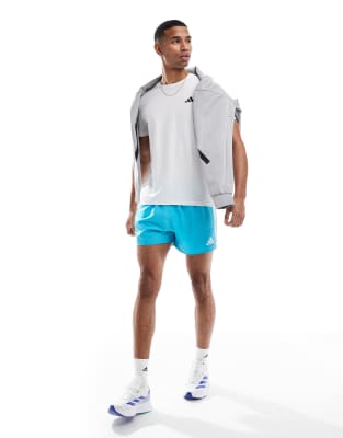 adidas Training – Niebieskie szorty kąpielowe z 3 paskami o długości 3 cali
