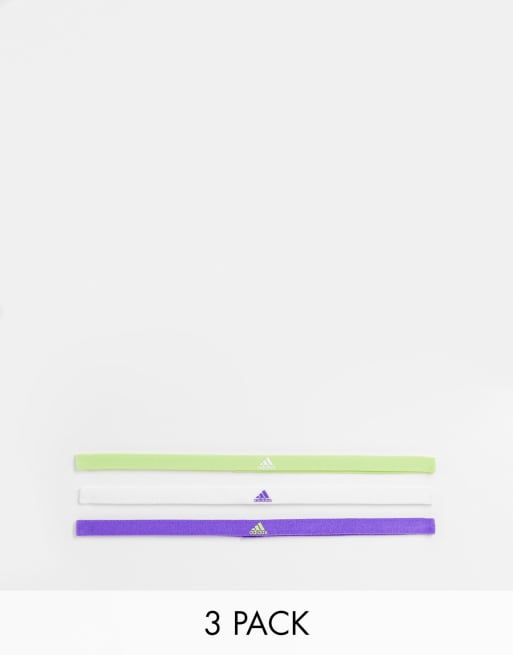 adidas Training – Zestaw 3 opasek na głowę w kolorach zielonym, białym i fioletowym