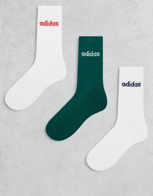 adidas Training – Zestaw 3 par skarpetek do połowy łydki w kolorach zielonym, białym, czerwonym