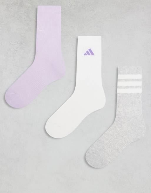 adidas Training – Zestaw 3 par skarpetek w kolorach szarym, białym i liliowym