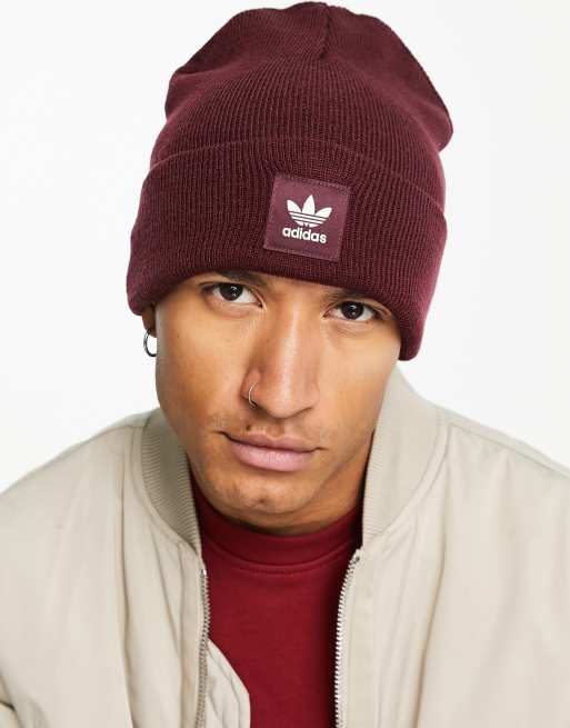 adidas Originals – Bordowo-biała czapka beanie z logo
