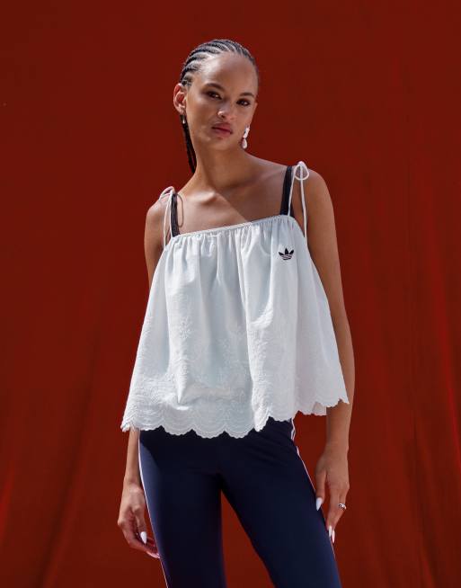 adidas Originals x ASOS – Biały top na ramiączkach z haftem angielskim
