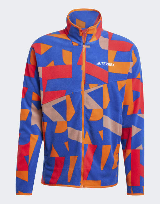 adidas Terrex – Niebiesko-beżowa polarowa kurtka zapinana na zamek ze wzorem