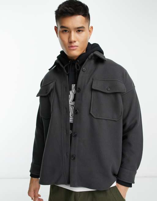 ADPT – Ciemnoszara filcowana koszula wierzchnia oversize