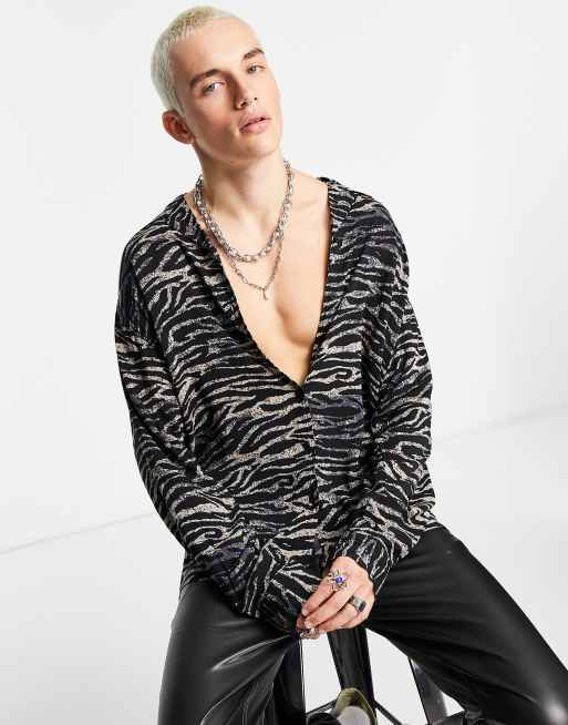 ADPT – Czarna koszula oversize we wzór w tygrysie paski