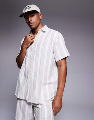 ADPT – Kremowa fakturowana koszula oversize w paski