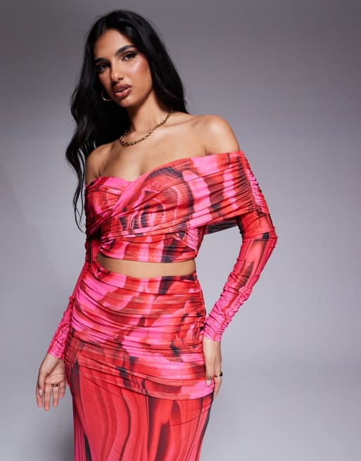 AFRM – Dido – Marszczony top z długim rękawem w duży różany wzór