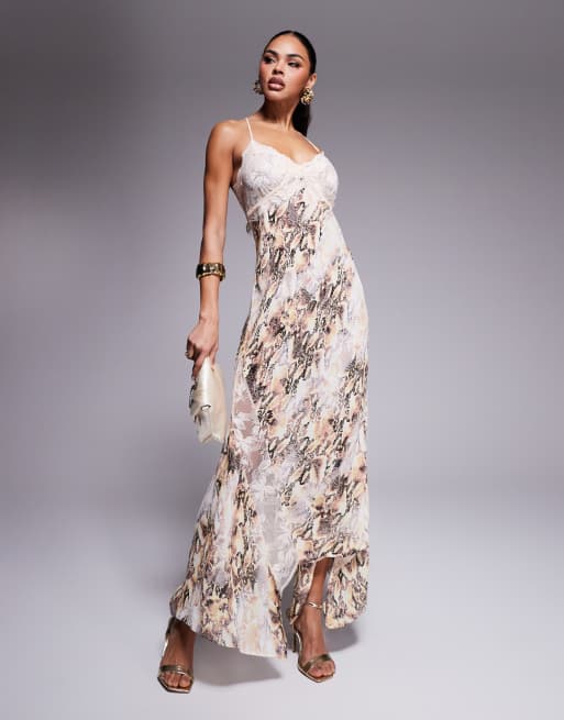 AFRM – Vince – Sukienka maxi na ramiączkach we wzór skóry węża z koronką