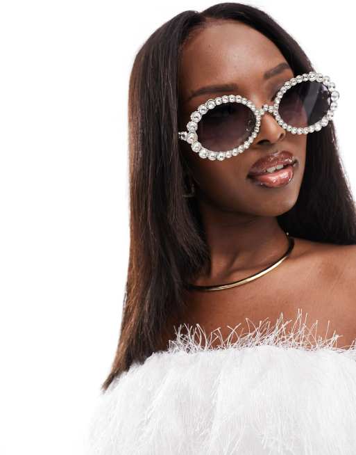 AJ Morgan – Srebrne okrągłe okulary przeciwsłoneczne z kryształkami