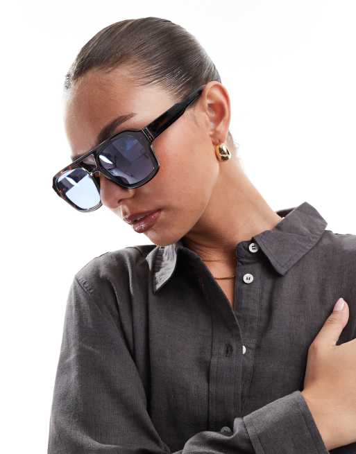 A.Kjaerbede – Kaya – Szylkretowe okulary przeciwsłoneczne typu aviator z niebieskimi soczewkami