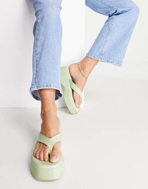 ALDO – Delphy – Szałwiowozielone sandały japonki na grubej podeszwie