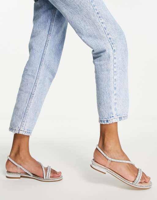 ALDO – Srebrne zdobione sandały z wielu pasków