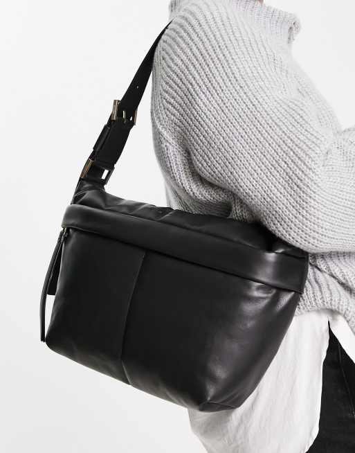 AllSaints – Albertine – Pikowana skórzana torebka na ramię w czarnym kolorze