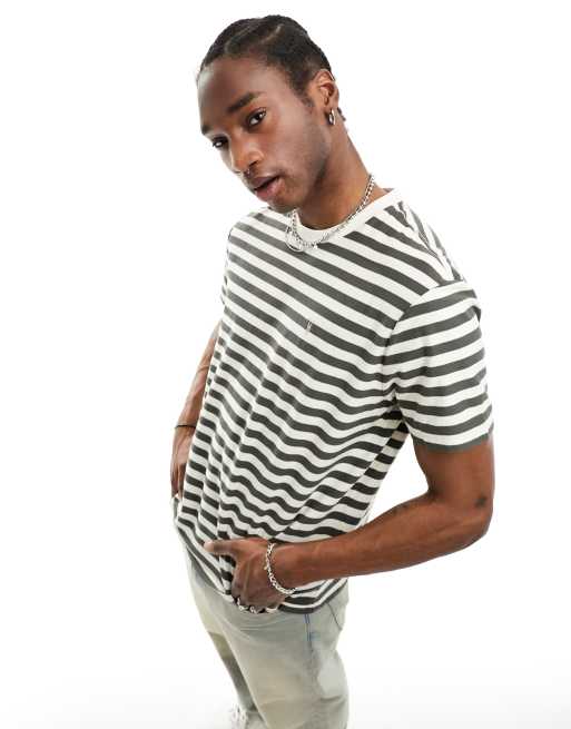 AllSaints – Barrett – T-shirt z okrągłym dekoltem i krótkimi rękawami, w biało-zielone paski