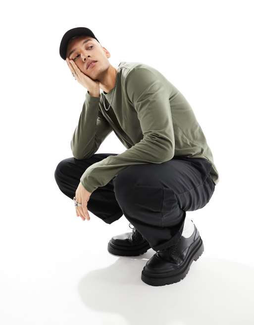 AllSaints – Brace – T-shirt z długimi rękawami i okrągłym dekoltem w kolorze khaki